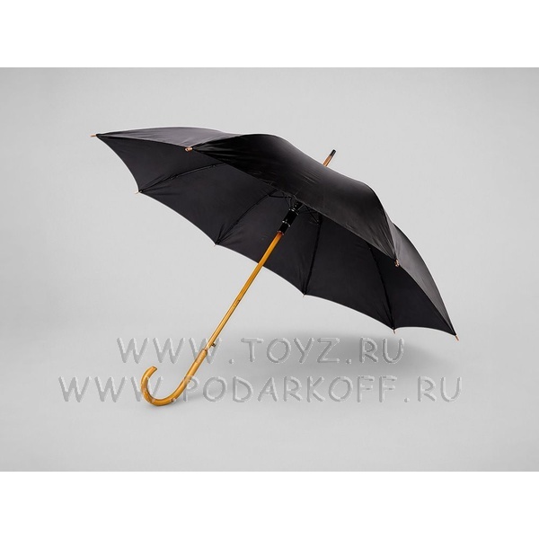 Зонт-трость полуавтоматический с деревянной ручкой, черный