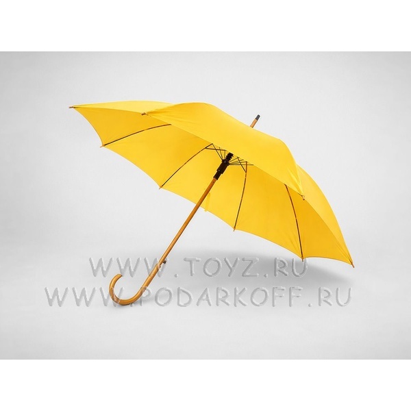 Зонт-трость полуавтоматический с деревянной ручкой, желтый